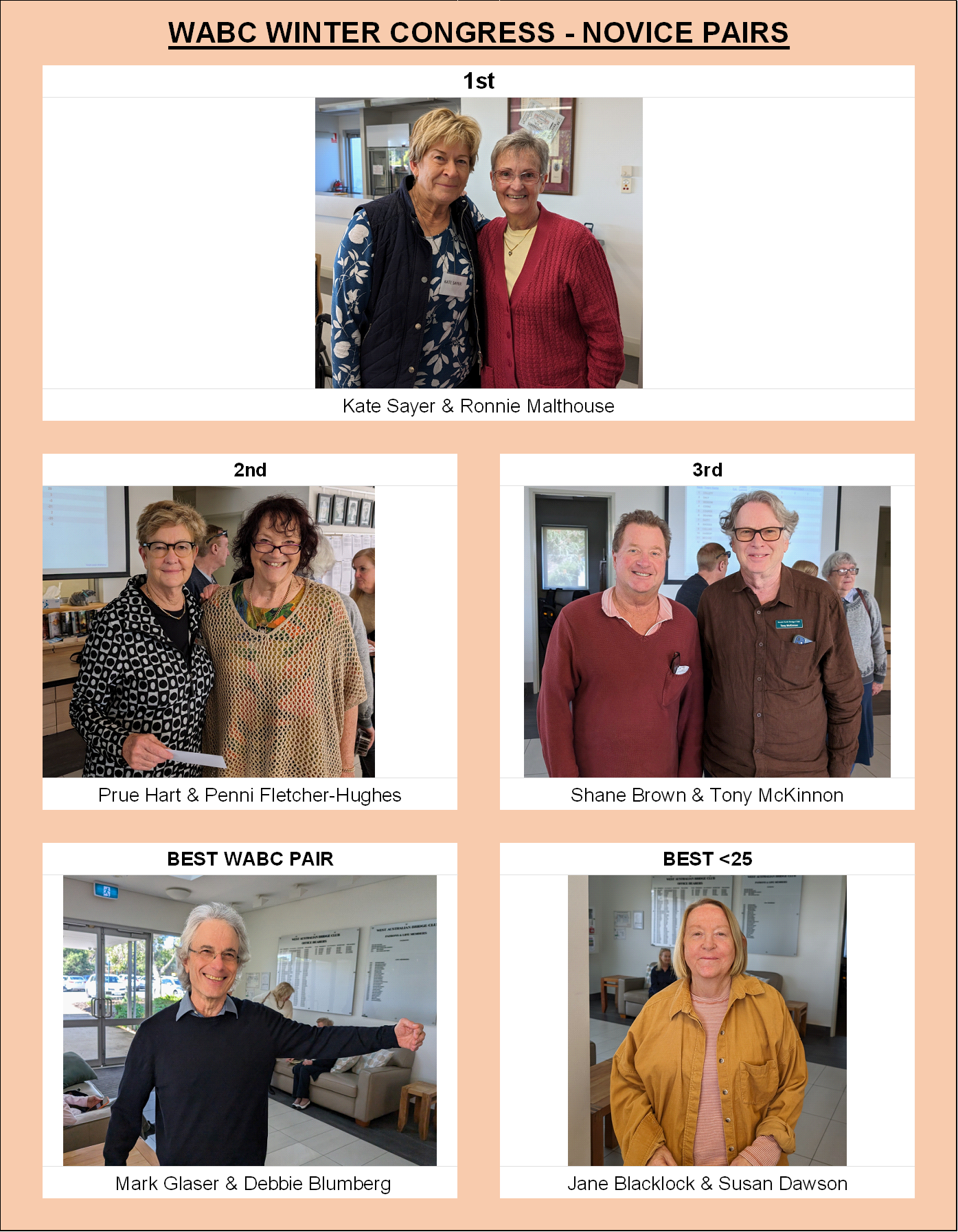 The fourth and final morning of the WABC Winter Super Congress started with the all day Swiss Teams and the morning Novice Pairs along with a walk in section.